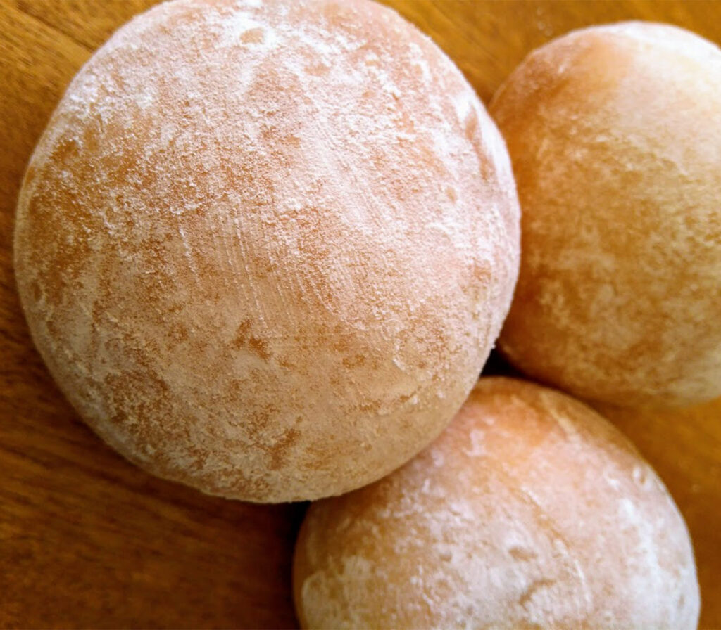 初回のパン教室では、まん丸いパンを4個焼きます。