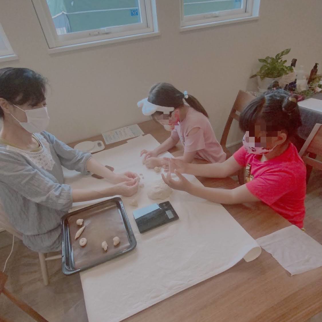 毎月第2土曜日はカフェにてキチマルシェ開催。今月は子どもたちがパンを触るきっかけになるようワークショップを開催し飾りパンを作りました。